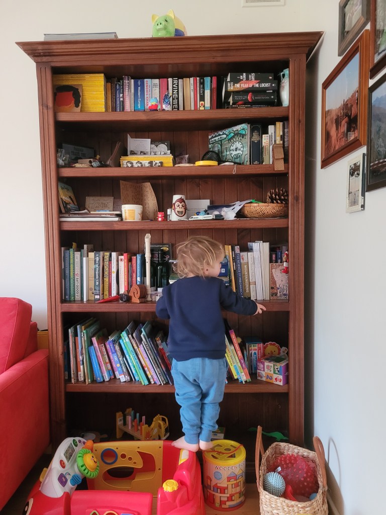 Monkey is great at playing by himself, without the option of TV he has had to get creative and he currently has an attention span long enough for me to at least start or sometimes complete a task. Books will often keep him occupied for 10 – 20 minutes.