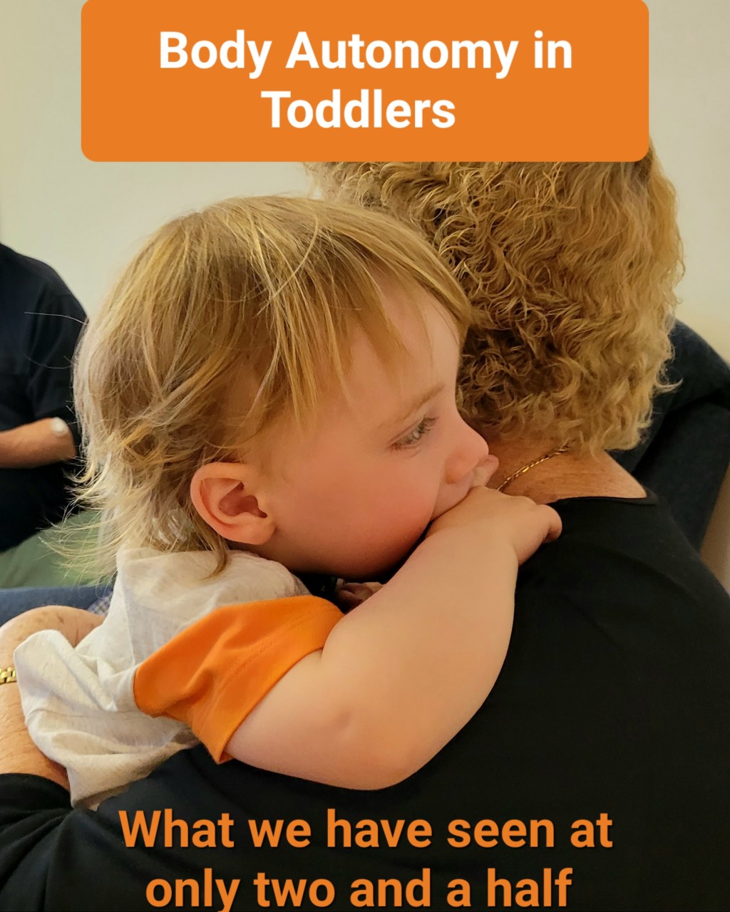 Hubby and I were discussing this recently and that when Hubby was younger he felt he had no autonomy to say no when his cheeks were pinched or that he had to hug all his relatives goodbye, even the ones he only saw once a year and were basically strangers. He wants to make sure that Monkey understands he gets a say in if and how he is touched as this was lacking in his childhood.