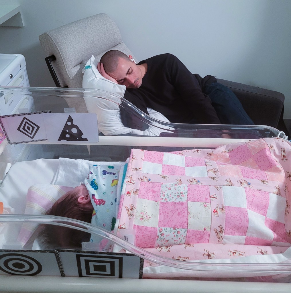 This allowed her to move out of NICU but we were still working on making sure she didn’t have morphine withdrawals as she had been on it her whole life. This took an additional week to slowly wean her off of it. With the hope that non-pharmacological practices (such as breastfeeding, skin to skin and physical comfort) would help decrease her length of weaning off the morphine, I was at the hospital 8am – 6pm almost everyday. The hospital wasn’t set up for parents to stay overnight so this wasn’t a possibility.